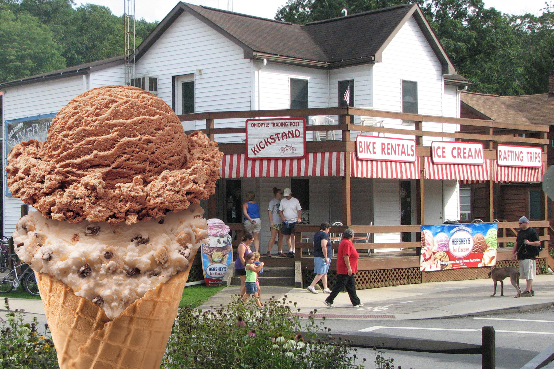 Conveniently located at the entrance to the bike trail on the corner of Sherman and Sheridan Streets, the Kickstand Ice Cream Parlor and Bicycle Rental is a must stop when visiting Ohiopyle. With 32 flavors of premium hand dipped Hershey's Ice Cream, there is sure to be a favorite flavor to fulfill your sweet tooth. We rent top of the line Trek Bicycles and maintain our fleet with a bicycle mechanic on duty for any last minute adjustments. We update our fleet with new bicycles every year, so you can pedal the Great Allegheny Passage with the highest quality Trek bike.